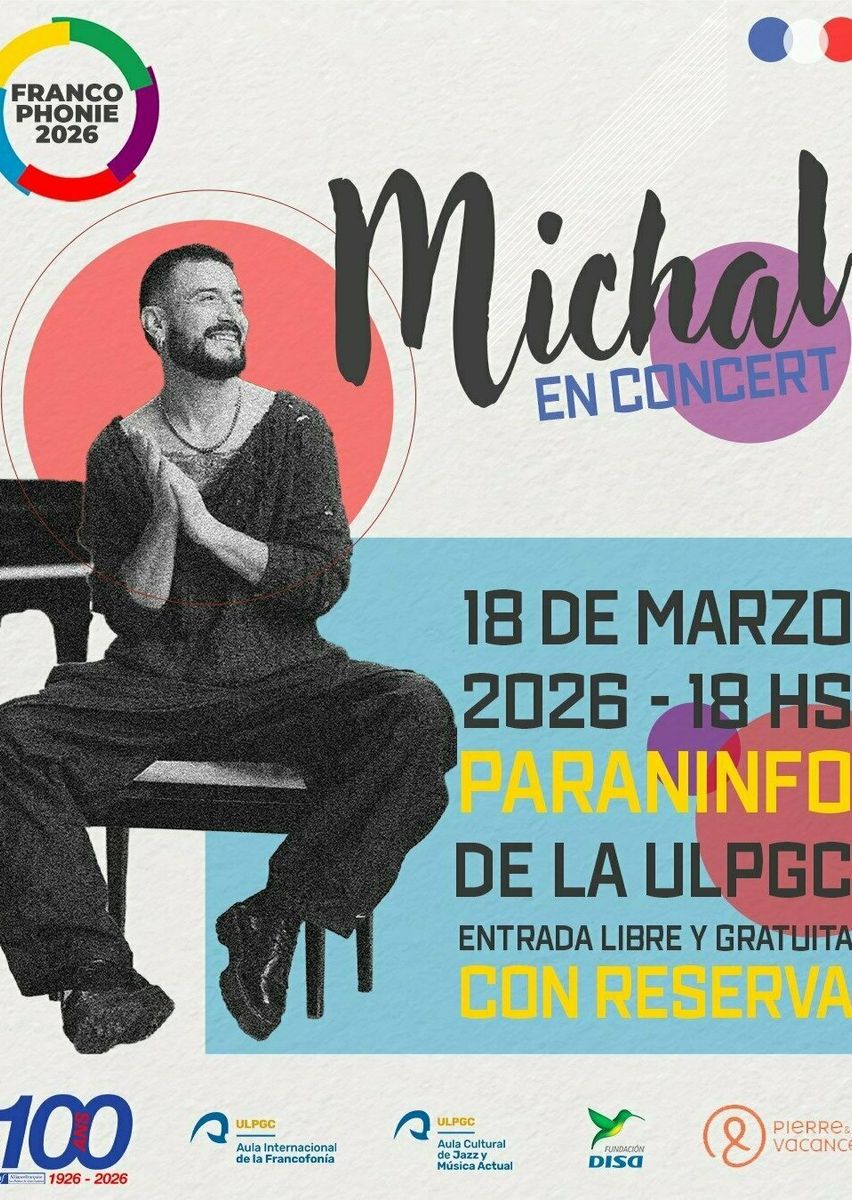 The University of Las Palmas de Gran Canaria and the Alliance Française are celebrating the Francophonie with a very special concert by Michal. Michal Kwiatkowski is a Polish singer, pianist, songwriter and composer who has lived in France since 2002. He was discovered by the public as a finalist in Star Academy 3 in 2003, competing against his friend Elodie Frégé. Since then, he has released six albums and has performed extensively in French‑speaking countries and in Poland. His repertoire combines French chanson, acoustic pop inspired by classical music (he released an album entitled "Chopin Etc.", inspired by the work of his compatriot Frédéric Chopin), dream pop and even electronic music. Accompanied by his piano, which Michal calls "an extension of his body", the artist invites us to journey through his artistic career, performing his own songs ("Viens jusqu'à moi", "Mon Tout", "Mama" and "Je m'accroche"), as well as the iconic French songs that have marked his life ("Ainsi soit je" by Mylène Farmer and "Chanson des vieux amants" by Jacques Brel). Not to mention his latest single, "Je sais que tu m'as aimé", which Michal wrote as a tribute to all the people in his life who have passed away. Discover the world of Michal and his piano for the very first time in the Canary Islands! In collaboration with Fundación DISA.
