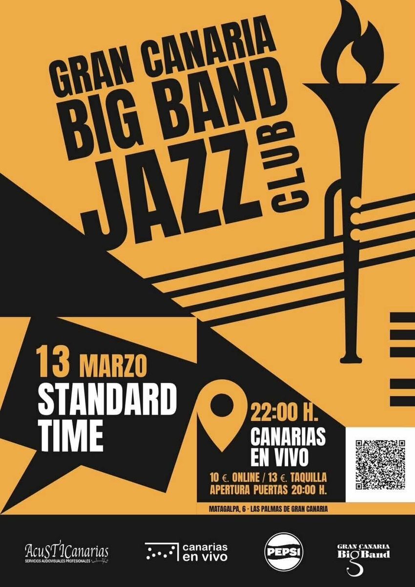 The Gran Canaria Big Band Jazz Club concert at Canarias en Vivo comes to Las Palmas on Friday, March 13, 2026. Gran Canaria Big Band Jazz Club is a cultural project that creates a permanent space dedicated to jazz in Big Band format. The Canarias en Vivo venue is transformed into a true Jazz Club, with an intimate and welcoming atmosphere. Date: Friday, March 13, 2026 Place: Canarias en Vivo concert hall Doors open: 8:00 p.m. Tickets: €10 online (+ management and guarantee fees) €13 at the door Get your ticket now and enjoy the live concert at Canarias en Vivo!