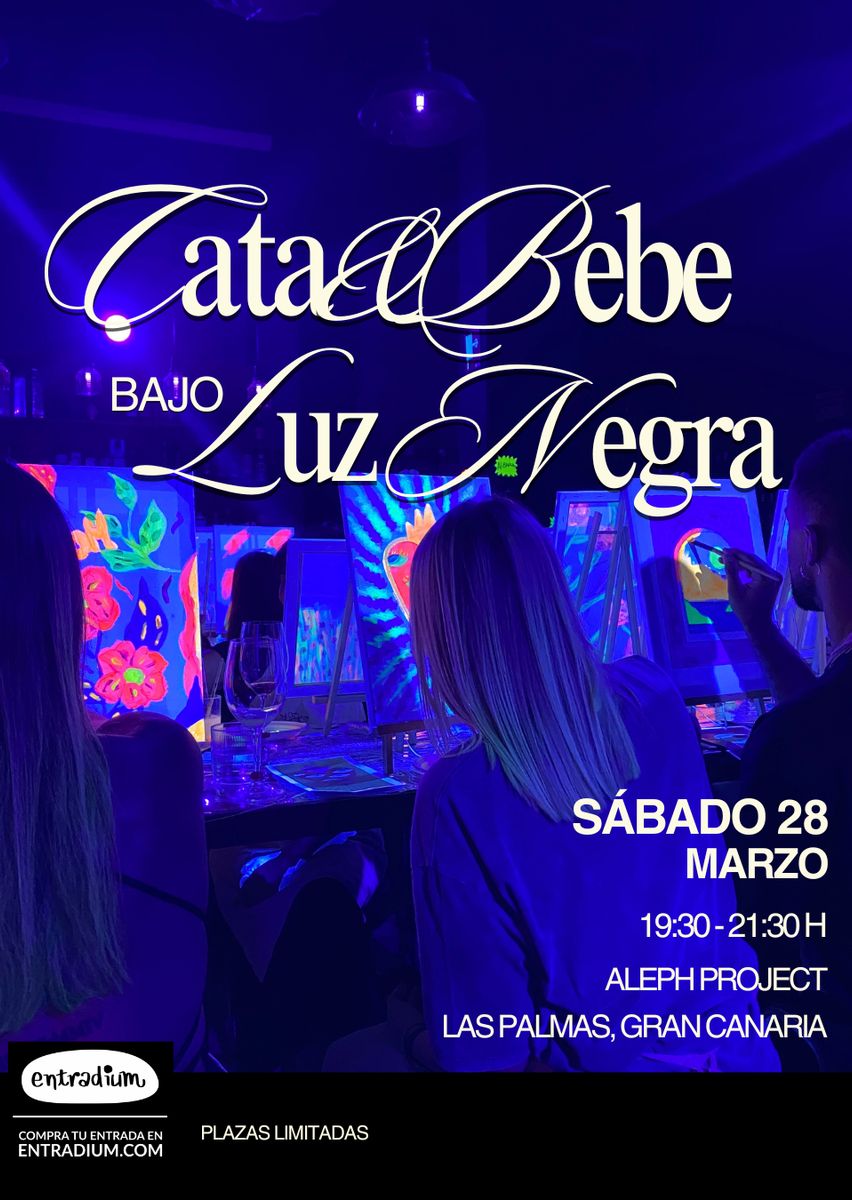 Looking for a different plan in Gran Canaria? Get ready to experience a unique evening with Cata y Bebe Bajo Luz Negra! Enjoy a dynamic tasting of three wines specially selected to surprise you with their grapes, aromas and designations of origin. You’ll discover new sensations and learn about wine in a fun, relaxed and uncomplicated way. Afterwards, let yourself be carried away by your most creative side in a black light painting experience. You don’t need to know how to draw: we’ll give you examples, ideas and inspiration so you can loosen up and let your imagination flow. Throughout the whole experience you can keep drinking the wine you like the most, accompanied by generous snacks and fresh water to keep the pace. What does the experience include? - Guided tasting of 3 selected wines - Creative painting under black light - All the wine you want during the activity - Assorted snacks and water included - Painting materials and canvas - A different, fun and 100% unforgettable experience Alcohol-free option available If you prefer to enjoy the experience with soft drinks instead of wine, we also have a special option for you. Write to us on Instagram @cataybebe_ or send us an email at cataybebe@gmail.com to arrange it. (Special price: €33 per person). Live, create and share This event is perfect for sharing, laughing and creating unique memories. If you want to see photos and videos from previous editions, visit our Instagram: @cataybebe_. Very limited places — book now so you don’t miss out!